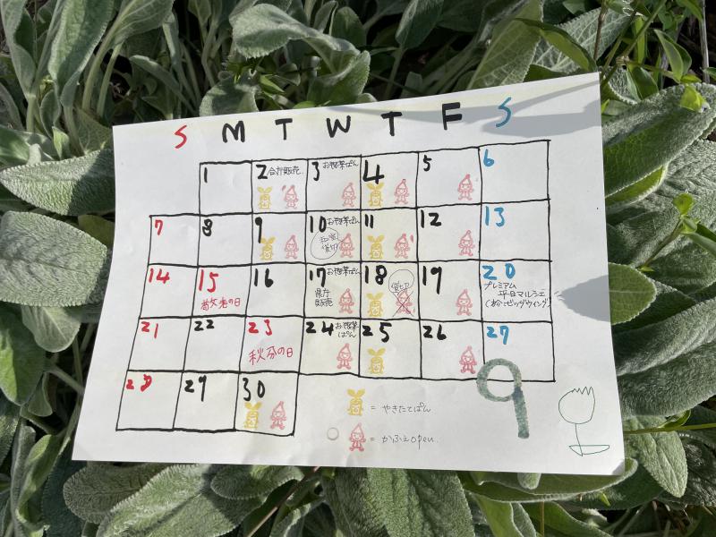9月の営業日カレンダーです