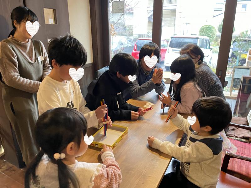 食後は参加されたこどもも大人も入り混じり、みんなで棒倒しやカードゲーム、