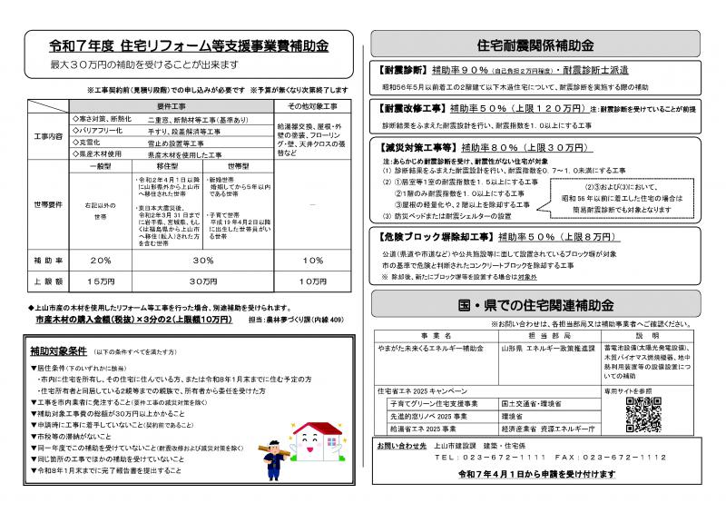 < 上山市役所 >〒999-3192山形県上山市河崎一丁目1番10号建築・住宅係Tel:023-672-1111(代)Fax:023-672-1112