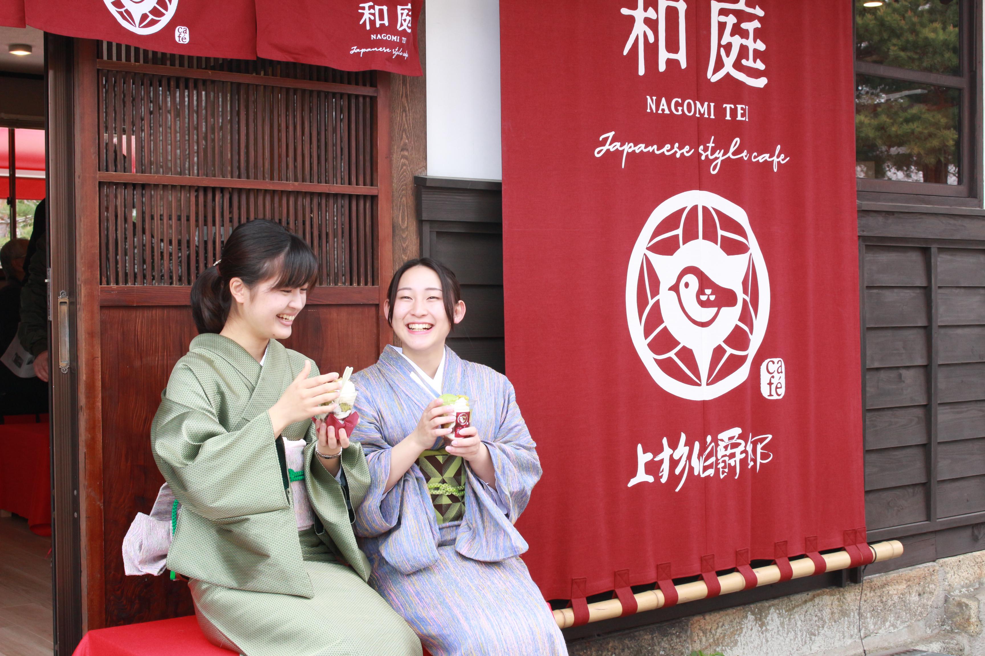和風カフェでは、コーヒー、抹茶をはじめ、米沢ならではのジェラートやオリジナルのスイーツなど、お子様から男性・女性問わず、幅広い年代の方々にお楽しみいただけるメニューを用意しております。