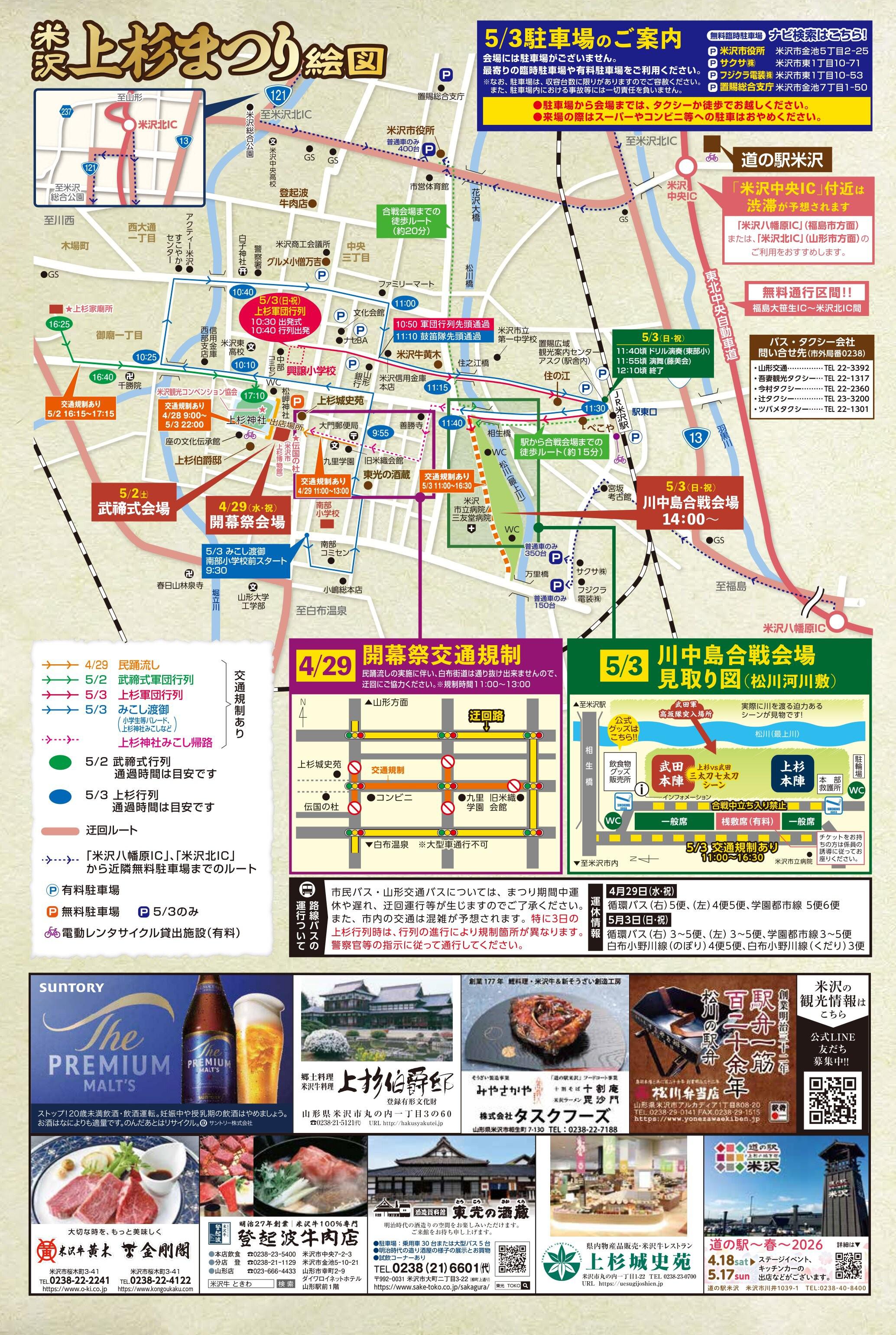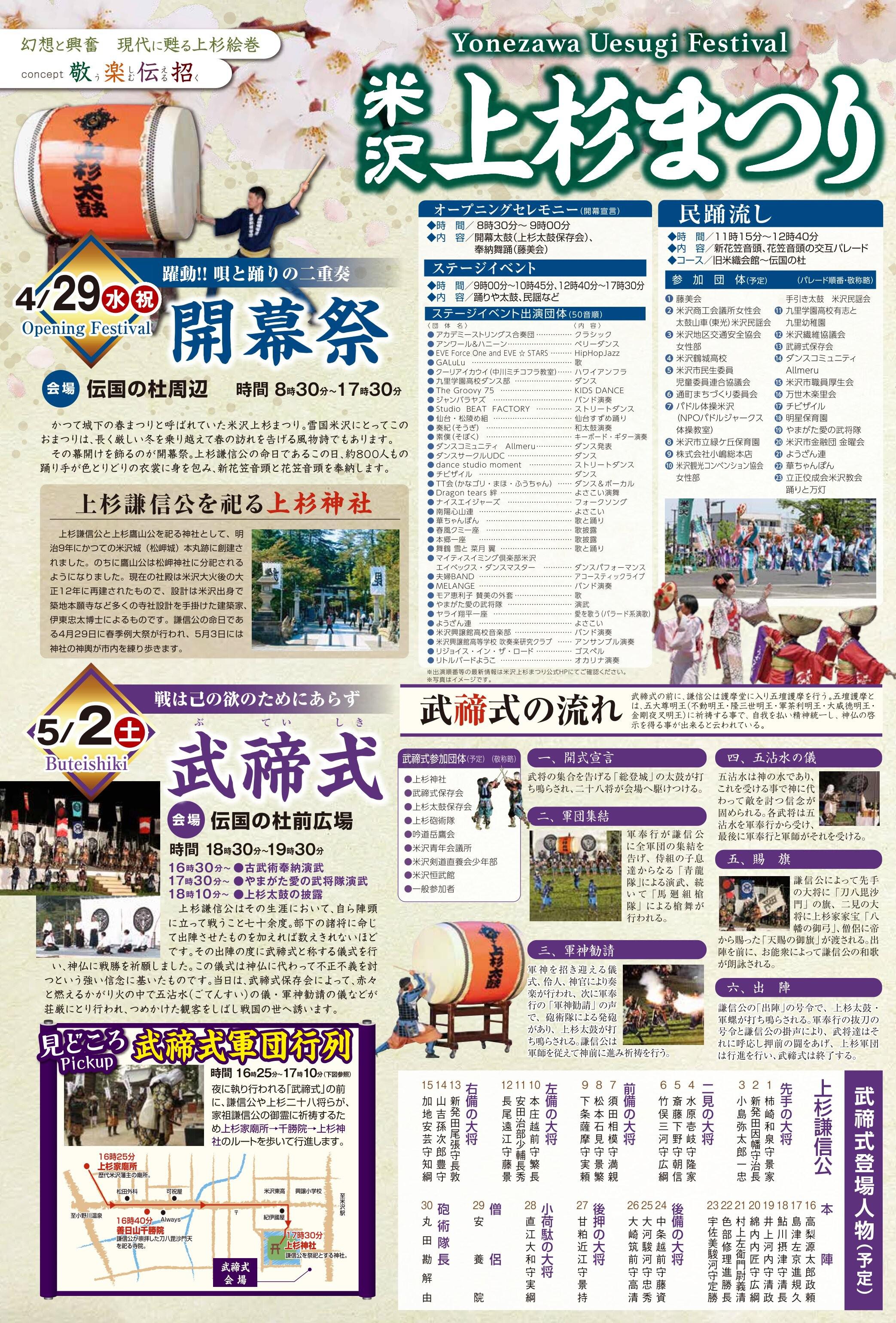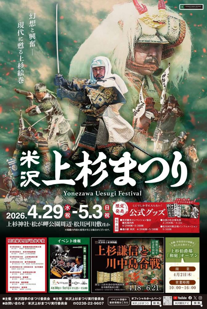 上杉まつりの情報だけでなく、米沢市内でこの期間行われているイベント情報なども載せていますので、そちらも併せてお楽しみください。