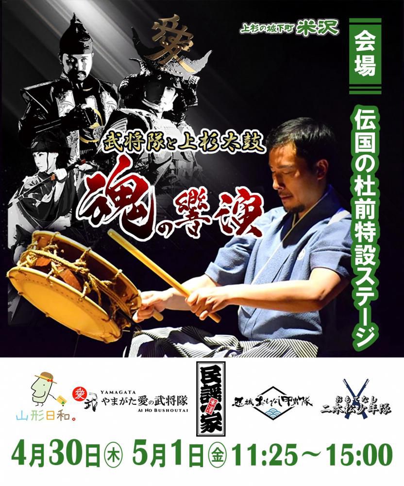 米沢民謡一家による上杉太鼓や、やまがた愛の武将隊による演武を披露します!