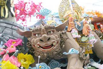 織田信長が本能寺で燃えさかるシーン(本能寺の変)の山車などもあった。
