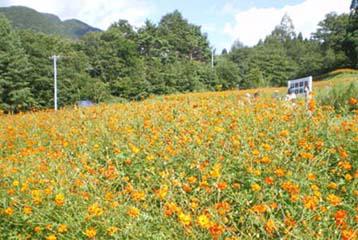 面白山高原であるが、9月〜10月頃はコスモスの花で