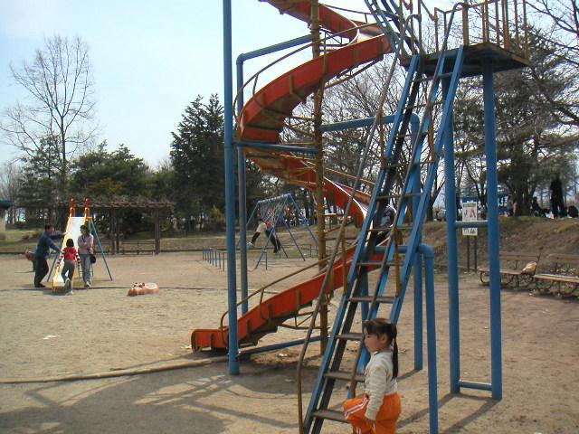 ブランコ、螺旋滑り台、鉄棒、滑り台、砂場などあります。