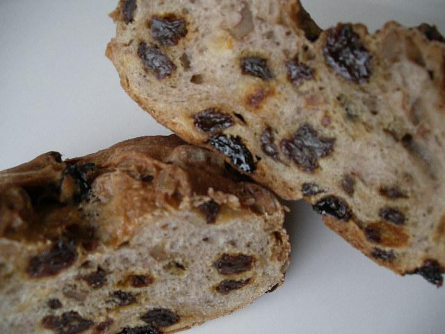 レーズンやクルミがぎっしり。スライスしてかるく焼いて食べるととっても香ばしいです。