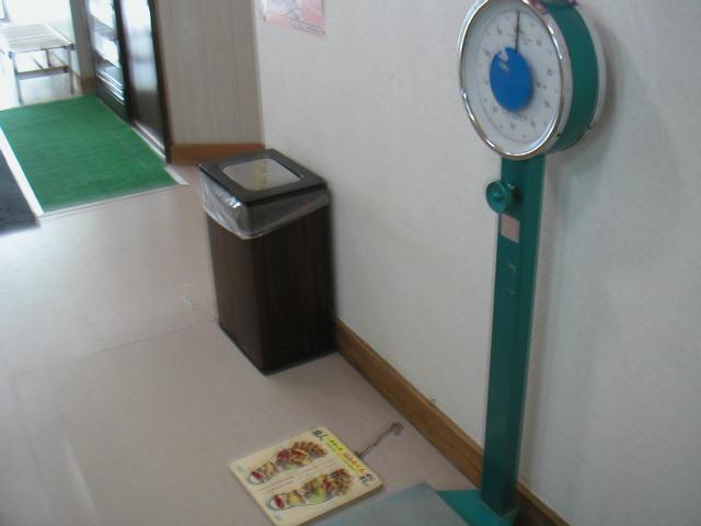 レトロな体重計や足つぼマッサージの足ふみ君があります。ドライヤーも無料。