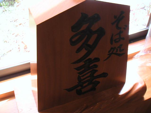流石天童です。多喜の文字が力強く彫られた将棋の駒です。
