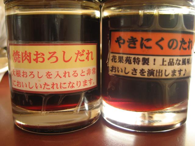 花果苑特製の「やきにくだれ」と「おろしだれ」です。