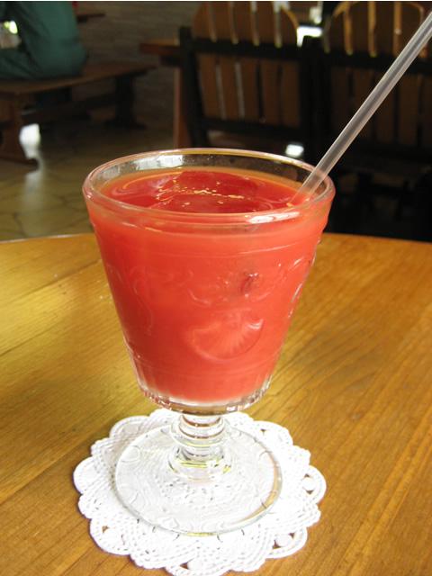 まるでトマトジュースのような真っ赤の「ブラッドオレンジジュース」。地中海地域で栽培されるArancia Rossa(赤いオレンジ)は通常のオレンジと異なり身が赤いためにブラッド(血)という名がつけられたそうです。
