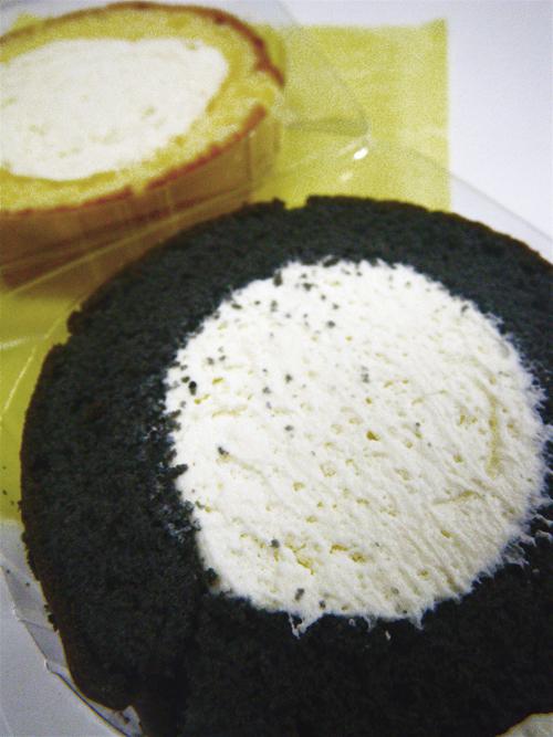 食用「炭」を生地に練り込んだロールケーキです。