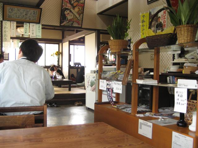 小上がりのある店内はゆったり過ごせる雰囲気。入口付近ではお蕎麦のお持ち帰りの販売も。