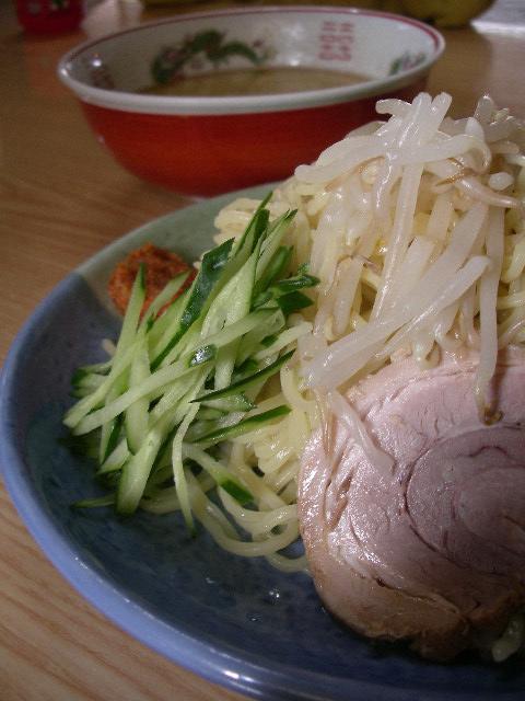 キュウリの千切りやフレッシュもやし付きのちょっと珍しいつけめんです。