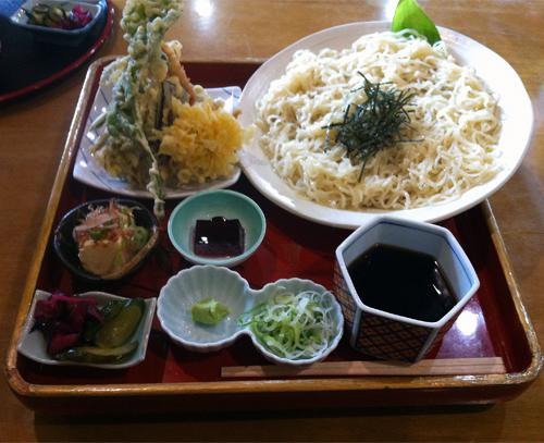 下足天はじめ菊の花、野菜かき揚げ、茄子、きのこ等