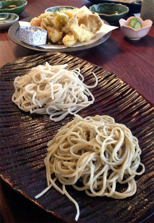 ▼季節の野菜の天ぷらを添えるのも良し。