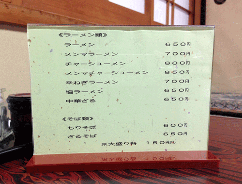 ▼お品書き、人気はラーメン。