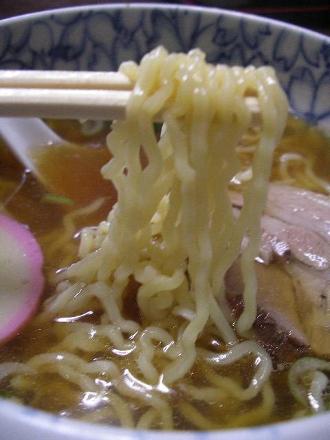 ▼和風の鶏ガラスープが絡む中太シコシコ縮れ麺