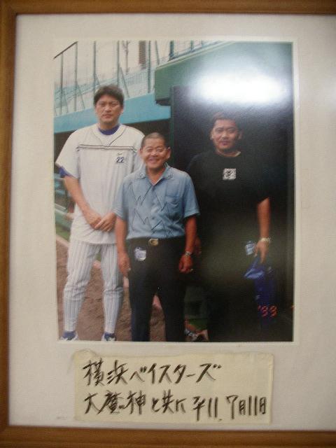大魔神佐々木投手と一緒に大の目温泉の社長が写ってます。