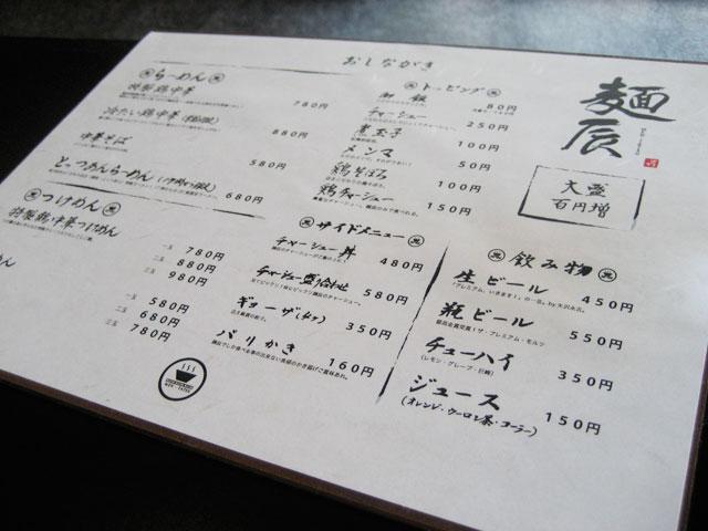 麺辰の基本メニューです。