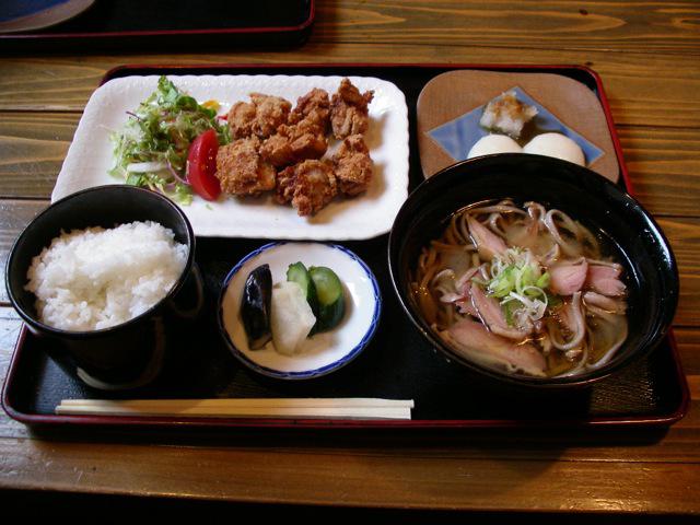 ▼食堂喜楽《唐揚げと肉蕎麦》山形市あかねケ丘