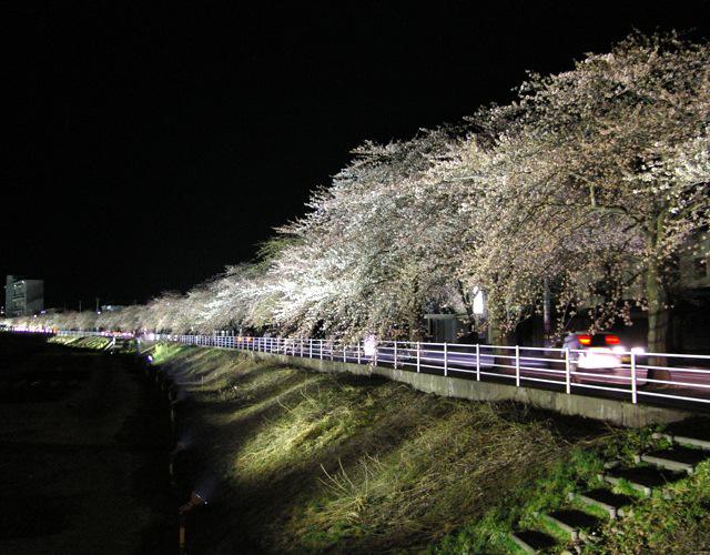 ▼桜《馬見ヶ崎さくらライン》ライトアップ