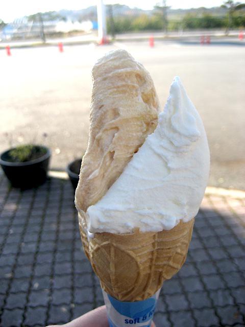 山形県の新ブランド米「つや姫」を使った米アイスとプリンアイスのダブル。