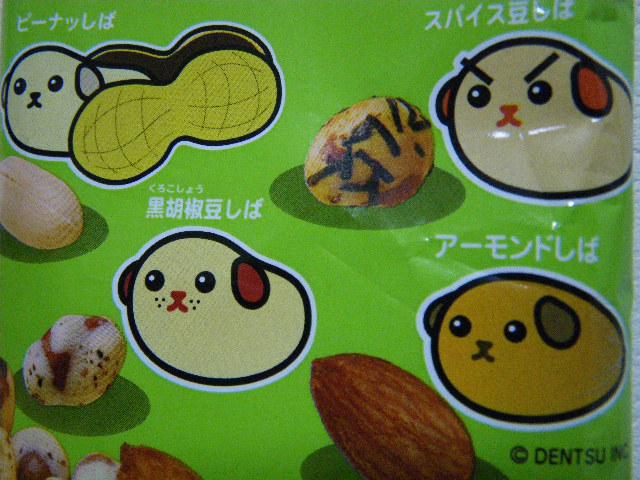 ピーナッしば、スパイス豆しば、黒胡椒豆しば、アーモンドしば・・・