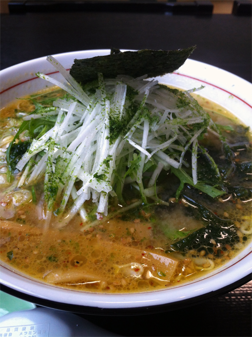 水菜やモヤシ、ネギなどボリューム満点のトッピング。