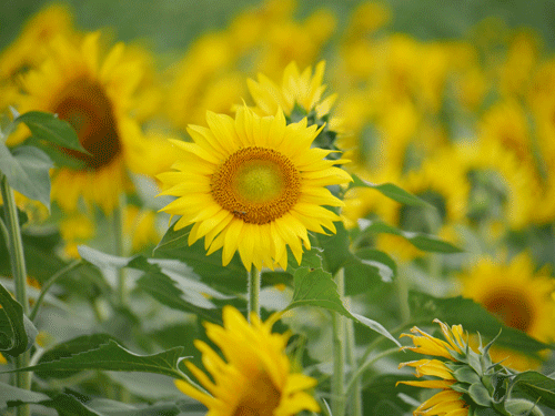 3000平方メートルの畑に咲く、約1万2000本のヒマワリ。