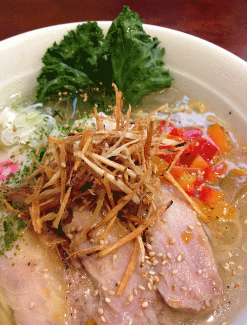 上山の奇習「カセ鳥」にちなんだ塩麹カセ鳥ラーメン。