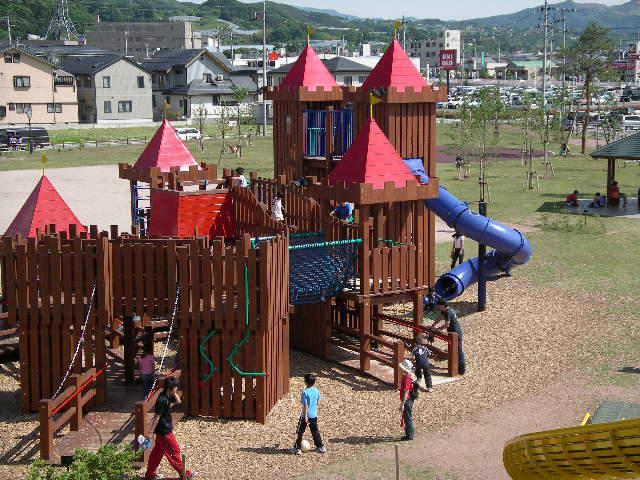 蔵王をのぞむ新興住宅地の蔵王成沢西に大型遊具がお目見え。