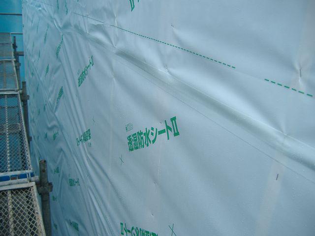 透湿防水シートを建物外壁面に貼りました。