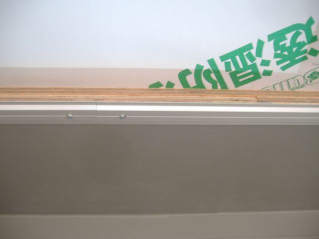 端部は、はがれないように、アルミの金具で留め付けてあります。