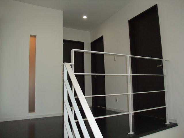 壁のガラスのスリットは、2Fトイレ明かり取りのスリットになります。