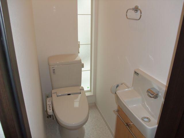 1Fトイレの窓は、腰窓ではなくて、縦長窓になってあり、床から明るくなっています。