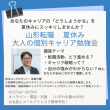 ・転職しようかな~どうしようかな~「転職相談」「登録」なんて言われるとちょっとハードルが高いな~と思ってしまっている ・転職前提ではないんだけど、これからのキャリアに迷っている ・そんなに温度感高くないんだけど、山形にUターンって、どうなんだろう? ・もっと自分のキャリアについて相談したいんだけど、転職エージェントの面談はいつも求人応募の話ばかりになってしまって期待外れ そんな方はいらっしゃいませんか? 人材業界に20年身をおいて、国家資格キャリアコンサルタントで、プロティアンキャリア協会認定メンターとして活躍している佐藤大輔がキャリアに関する個別勉強会を実施します。 対面、オンライン、お電話、いずれの方法でも可。 お子さん同席、ご夫婦で、ご家族一緒に、大丈夫です! みんなで自分の「キャリア」について考える場にしていただくこともできます。 普段のご相談申し込みとは違って「メールアドレス」「お名前」だけでご予約可能になっています。 気軽にお話をしてみて、もし「本格的に転職も視野に」ということでしたら、改めてご登録いただきます。 ご予約枠に限りがございますので、お早めにお申し込みください。 ご予約はこちらから。 ご希望時間帯をクリックしてお申し込みください。 TimerexCalendar();2025.08.01 -