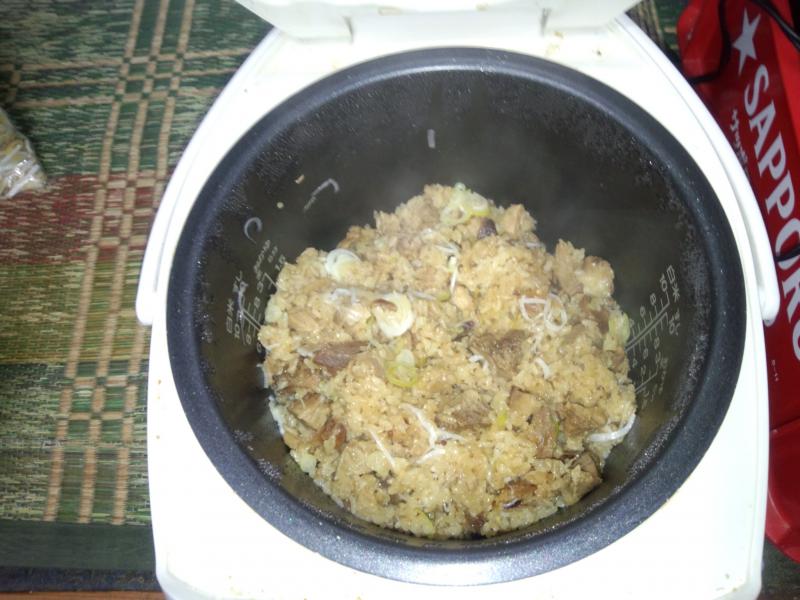 ▼米沢牛すじ入り中華スープで炊いたごはん