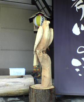 チェーンソーアートの鷹、足湯と同じ人の作。うまいもんだ!