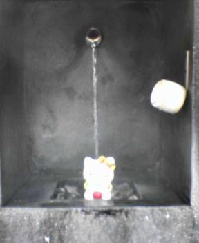 飲泉所峰の薬師で見つけたキティ!湯あみをさせてみました。ちなみに裏に後藤ひでとって書いてありました。心当たりの方は好きにして!