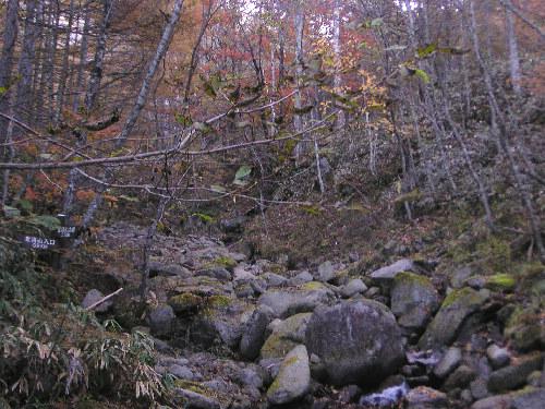 紅葉を眺めながら沢づたいに登っていきます。