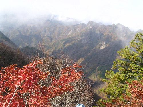 山頂にはガスがかかっており西側がやっとこの程度に見えるだけでした。それでも紅葉に満足しました。