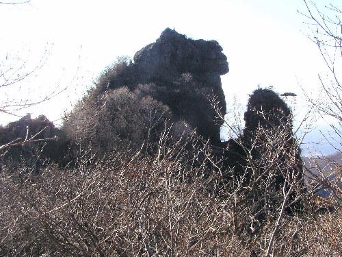 山頂に向かう途中で岩場を振り返って見ました。名前のとおり獅子に見えます。