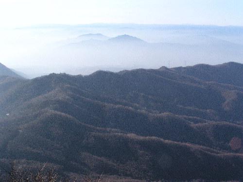 西には午前中に登った子持山、左後ろに四阿山、後に草津白根山、右後ろには志賀高原の横手山などが