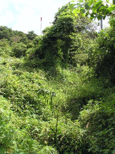 簡易舗装の道なのに、長年ほったらかしにしているようで藪だらけです。