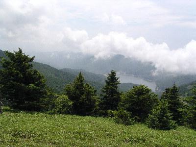 山頂は視界が開けており、抜群の展望です。しかし、残念ながら未だ富士山は雲の中です。