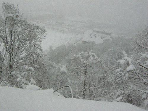 山頂から少し下った所から麓の市民体育館や公園の運動施設が見えました。