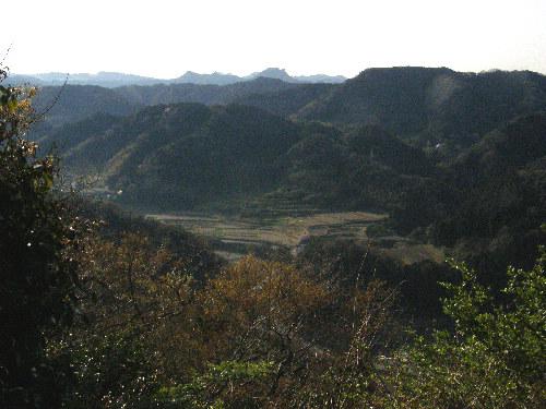 南西方向には御殿山、伊予ヶ岳などの遠くの山々と長狭街道からの入口が見えます。