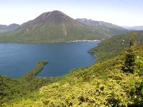 展望台から北側の中禅寺湖越しに太郎山、男体山、女峰山などが綺麗に見えます。
