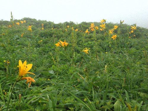 ガスに阻まれて眺めは今ひとつでしたがニッコウキスゲを始め山野草には恵まれました。