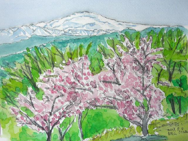 長岡山のさくら丘から見た月山です。